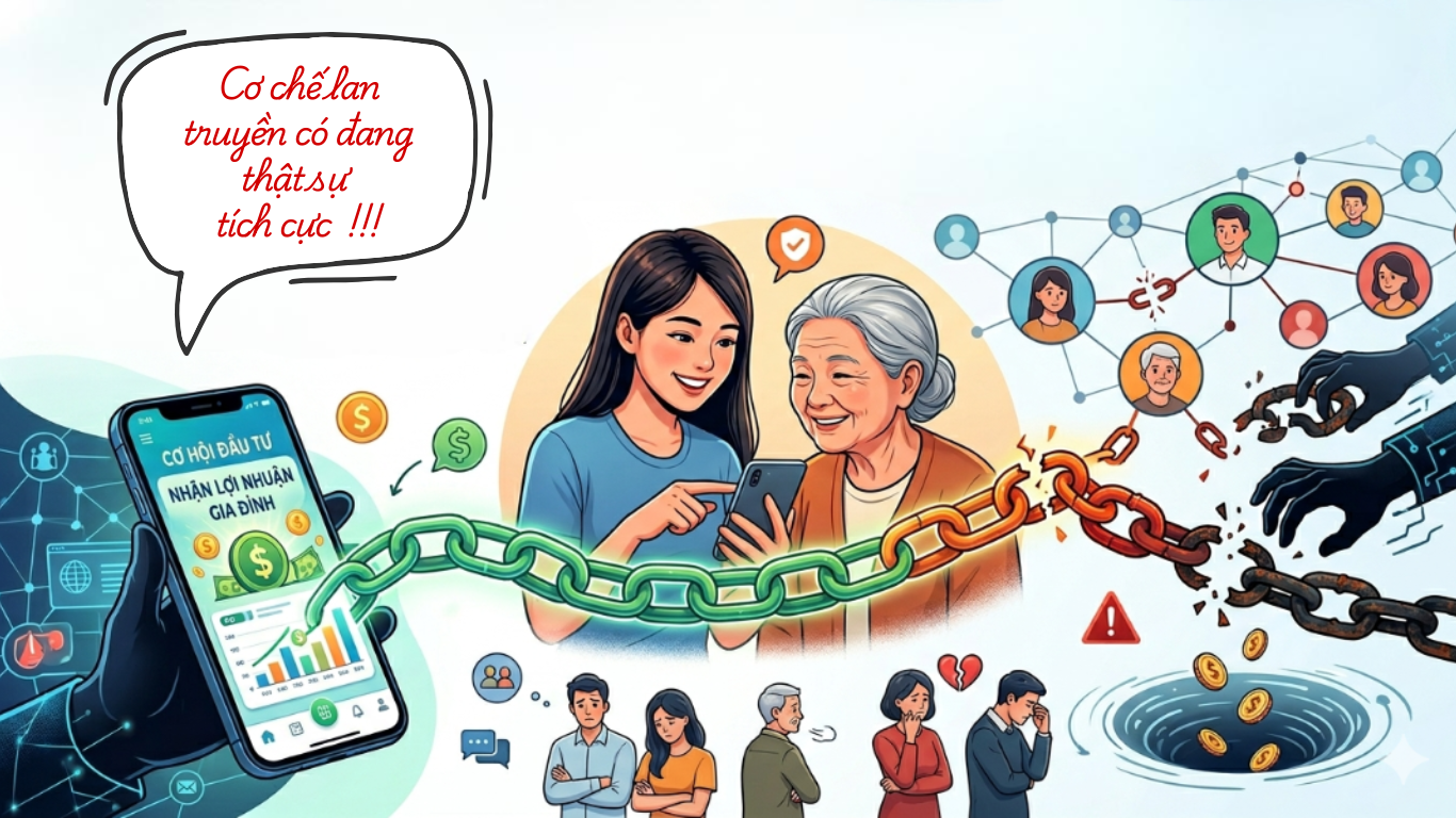 Sự khác biệt nằm ở chỗ người nhận thông tin ít khi đặt câu hỏi. Họ tin tưởng người giới thiệu vì mối quan hệ cá nhân đã có sẵn. Điều này làm giảm đáng kể khả năng kiểm chứng thông tin. Khi niềm tin được đặt sai chỗ, rủi ro sẽ tăng lên nhanh chóng.